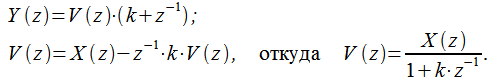 Рассмотрим цифровой фильтр первого порядка с передаточной