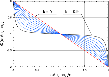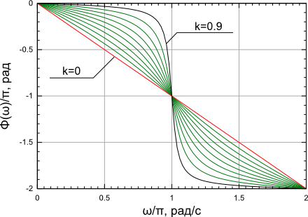 Вид ФЧХ всепропускающего фильтра при различных