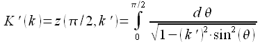 вводят понятие комплиментарного эллиптического интеграла: