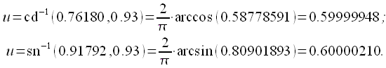 рассчитываем обратные эллиптические функции в соответствии с (21) и