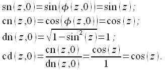 эллиптические функции вырождаются в тригонометрические.
