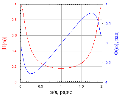 Рисунок 7: Один период АЧХ и ФЧХ фильтра