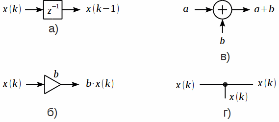 Рисунок 1: Обозначения блоков цифрового фильтра