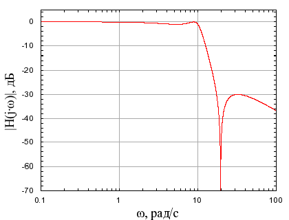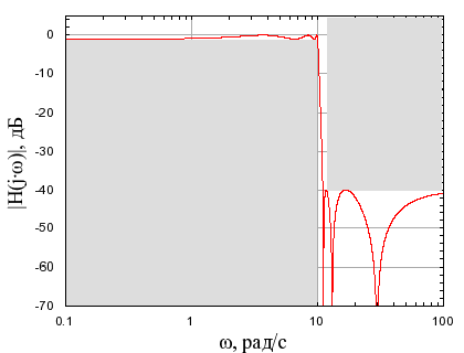 Рисунок 10: АЧХ исходного нормированного ФНЧ с пересчитанной переходной полосой