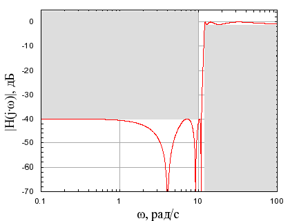 Рисунок 9: Коридор АЧХ для фильтра верхних частот