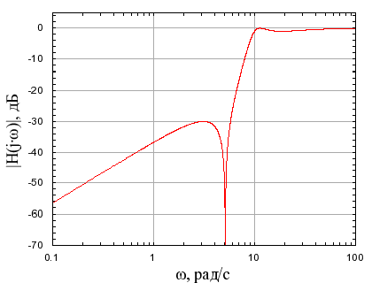 Рисунок 3: АЧХ пересчитанного ФНЧ с частотой среза 10 рад/с