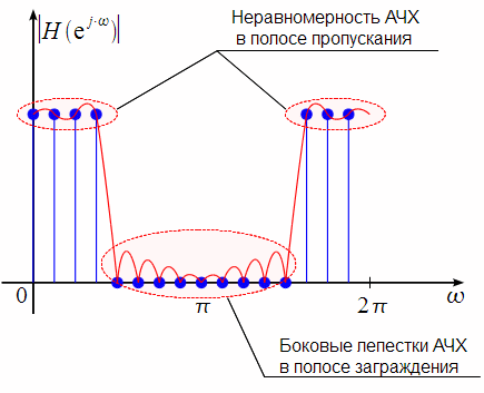 но отличается от требуемой АЧХ между узлами частотной выборки, как