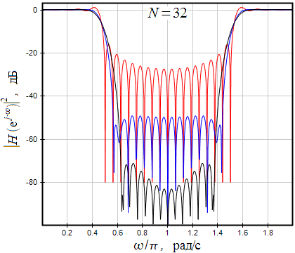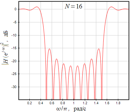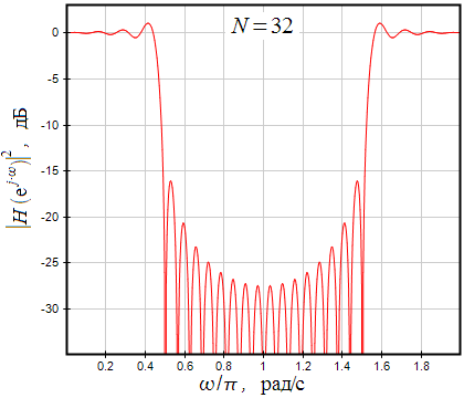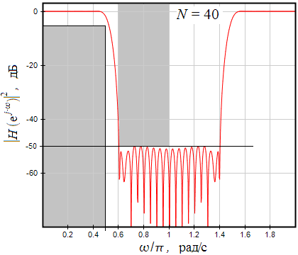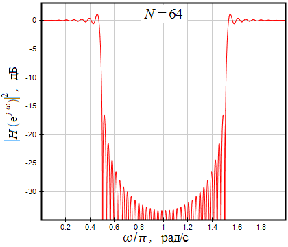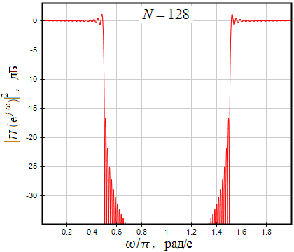 уровня боковых лепестков нашего фильтра, рассчитанного на основе