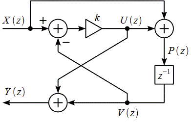 Рассмотрим цифровой фильтр первого порядка с передаточной