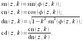 рассчитываем обратные эллиптические функции в соответствии с (21) и